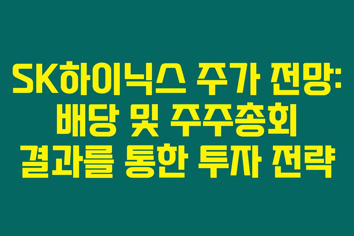 SK하이닉스 주식에 대해 살펴보고 계신가요? SK하이닉스의 주가는 어떻게 될까요? 투자 결정을 하기에 앞서, 배당과 주주총회 결과는 매우 중요한 요소입니다. 주식 투자에 대해 고민하고 있다면, 아래를 읽어보시면 많은 도움이 될 거예요.