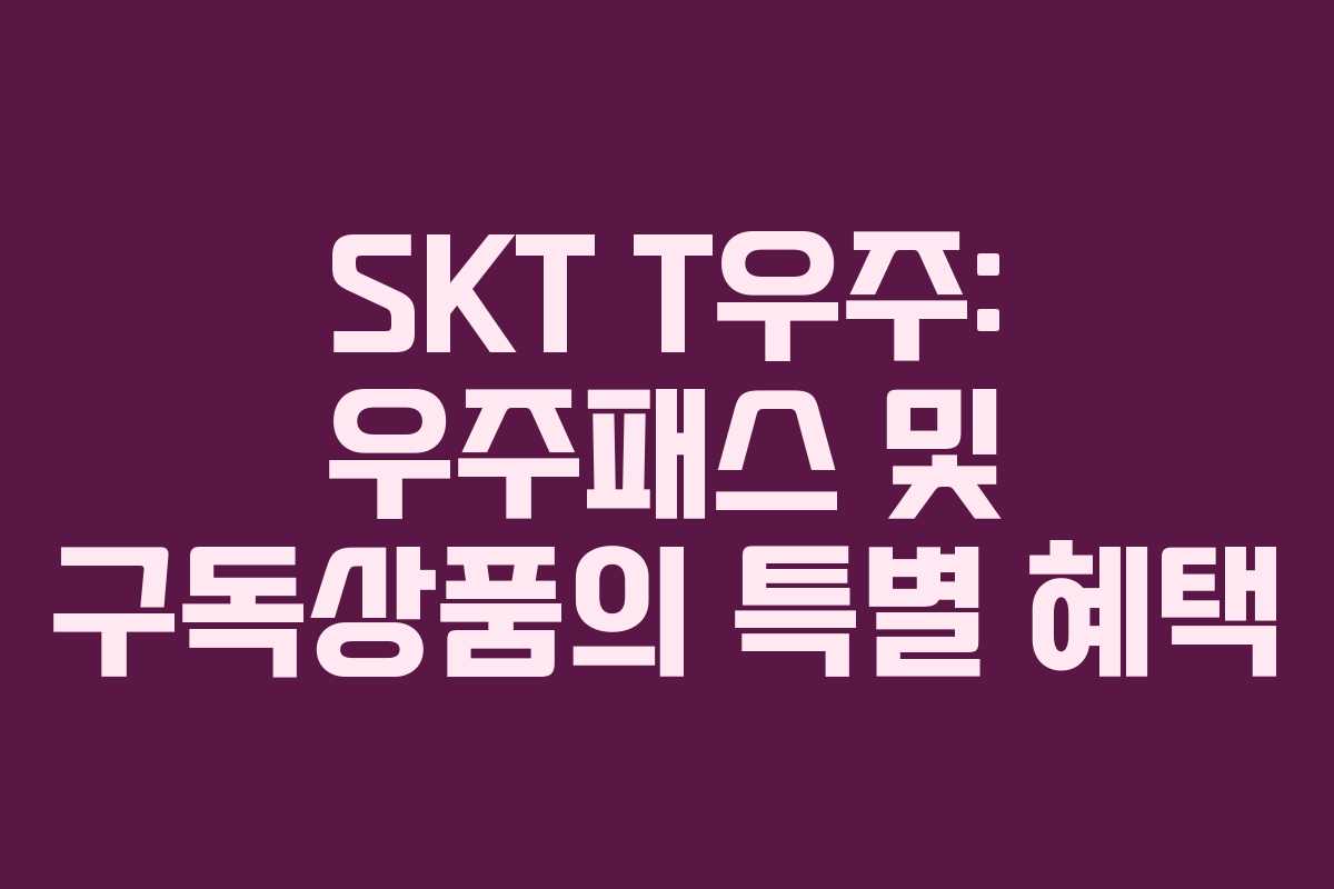 SK텔레콤의 T우주 서비스는 고객에게 다양한 혜택을 제공합니다. 특히 우주패스와 구독상품 가입 시 받을 수 있는 할인 혜택이 주목받고 있습니다. 본 글에서는 이 혜택의 종류와 이용 방법에 대해 자세히 설명하겠습니다.